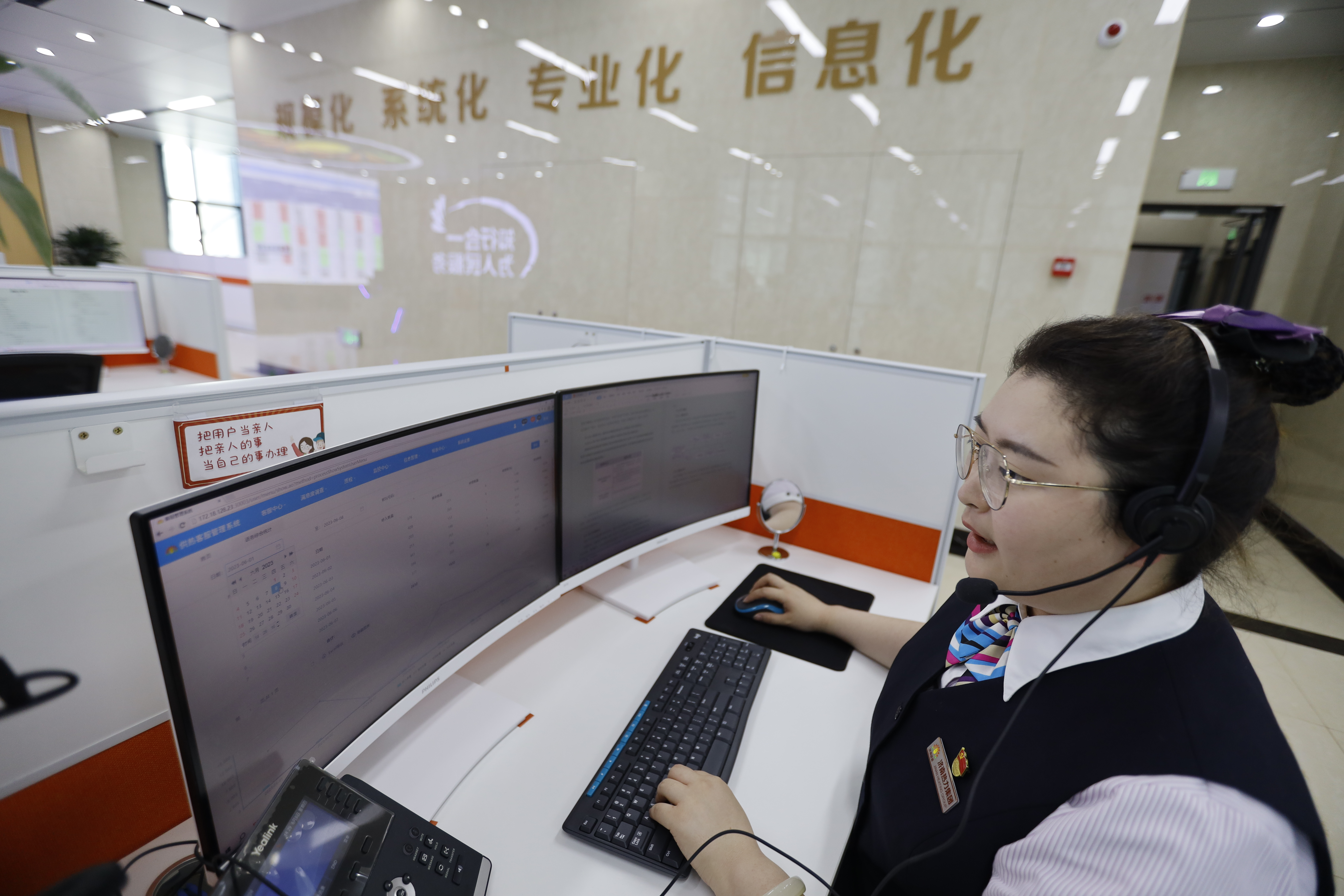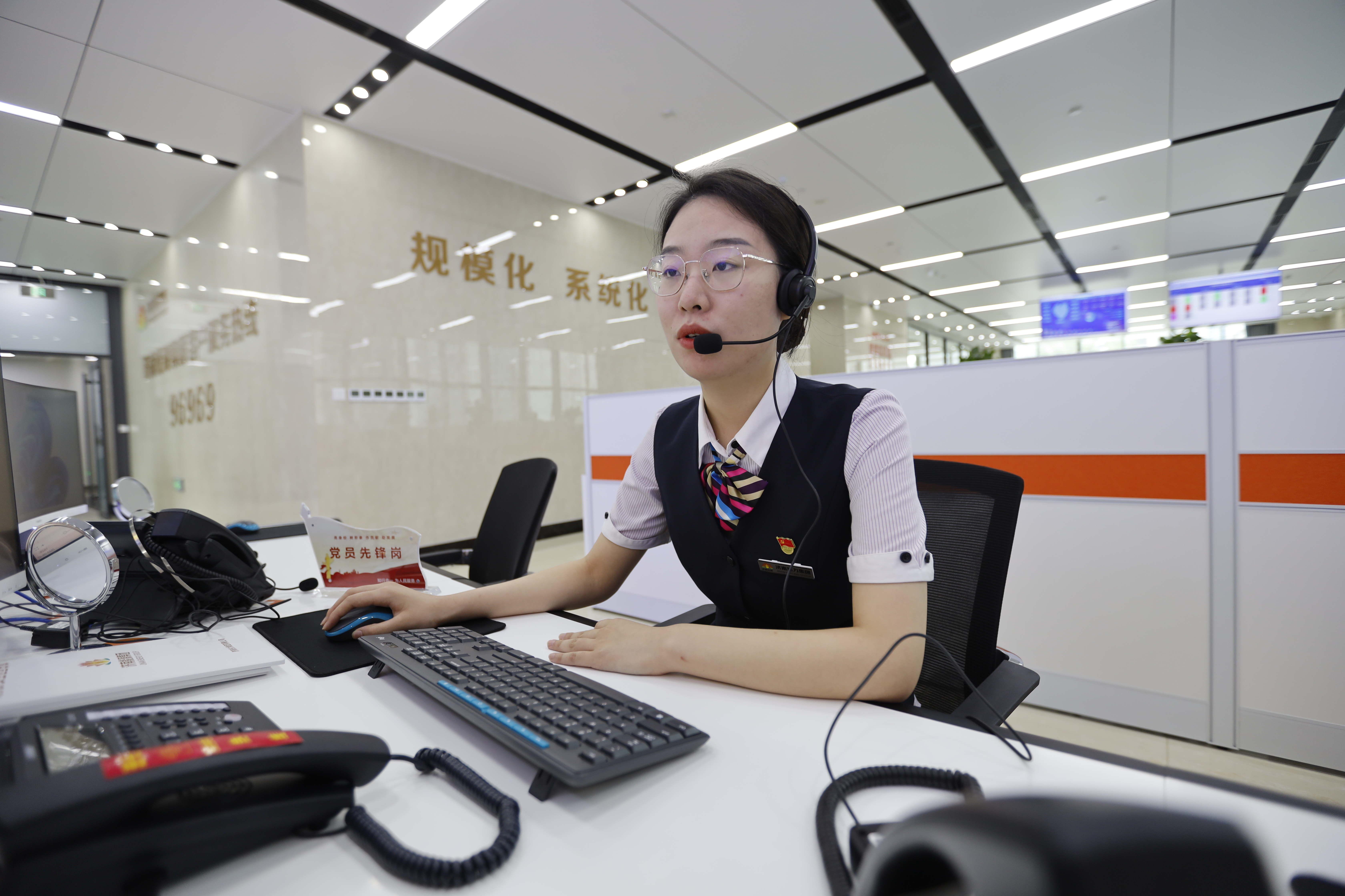 黨員話(huà)務(wù)亮身份,掛牌服務(wù)亮承諾。“把用戶(hù)當(dāng)親人,把親人的事當(dāng)自己的事辦理”,這句話(huà)被話(huà)務(wù)員陳琛放在工位上最醒目的位置。她告訴記者,這既是對(duì)外的服務(wù)承諾,也是對(duì)自己的時(shí)刻提醒,提醒自己要始終做到“知行合一,為人民服務(wù)”。
