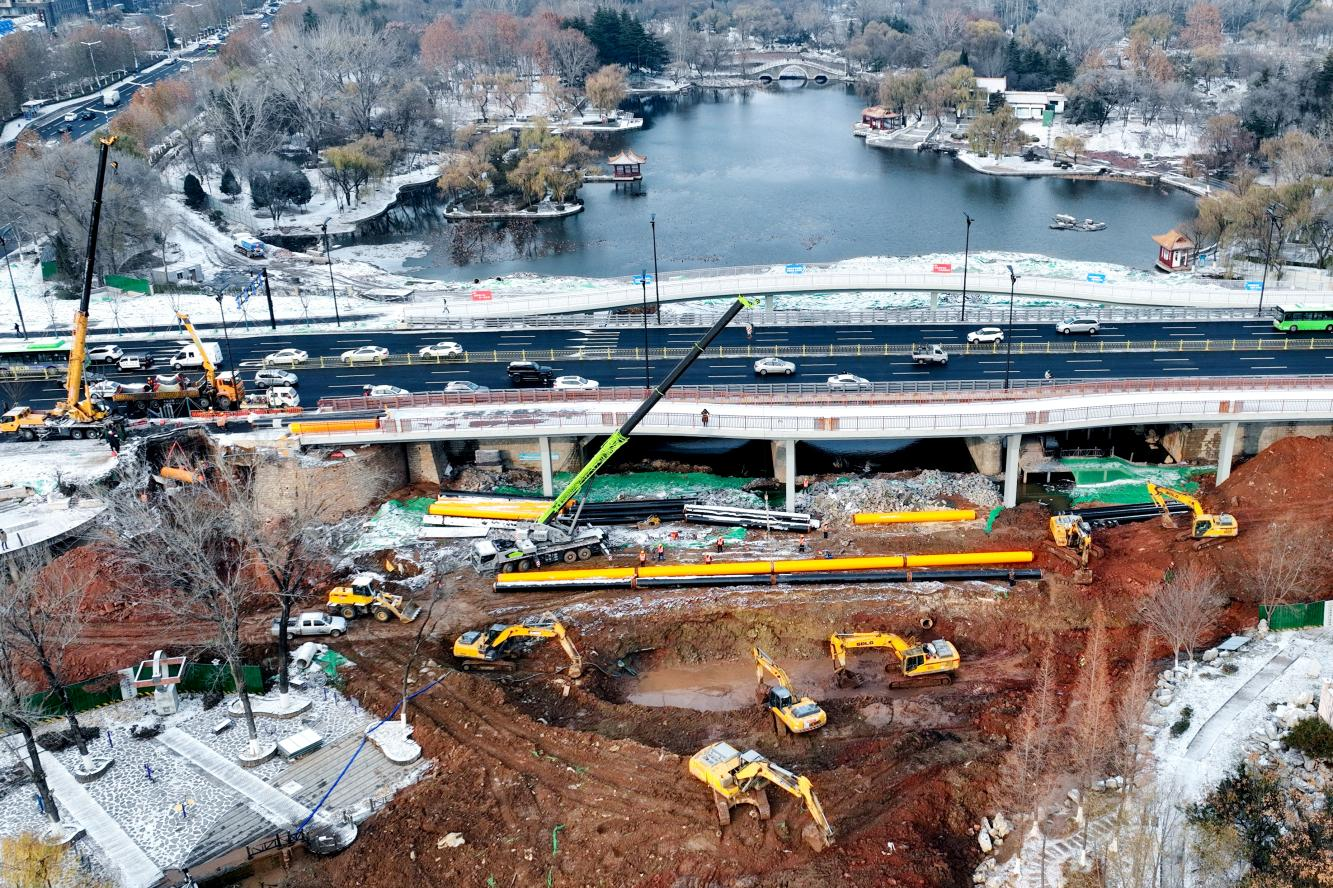 2023年12月12日,工程集團(tuán)接到能源集團(tuán)黨委交辦的萊蕪區(qū)供熱應(yīng)急保障緊急任務(wù),迅速組織骨干力量趕赴現(xiàn)場。據(jù)了解,該項(xiàng)目需打通魯中大街DN800一次管線的五處斷點(diǎn),其中兩處需要穿越河道,從萊蕪電廠調(diào)運(yùn)熱源解決汶水熱力170萬平方米的熱源不足問題,另需新建一座供熱能力為75MW的換熱站,全線總長7.3公里。