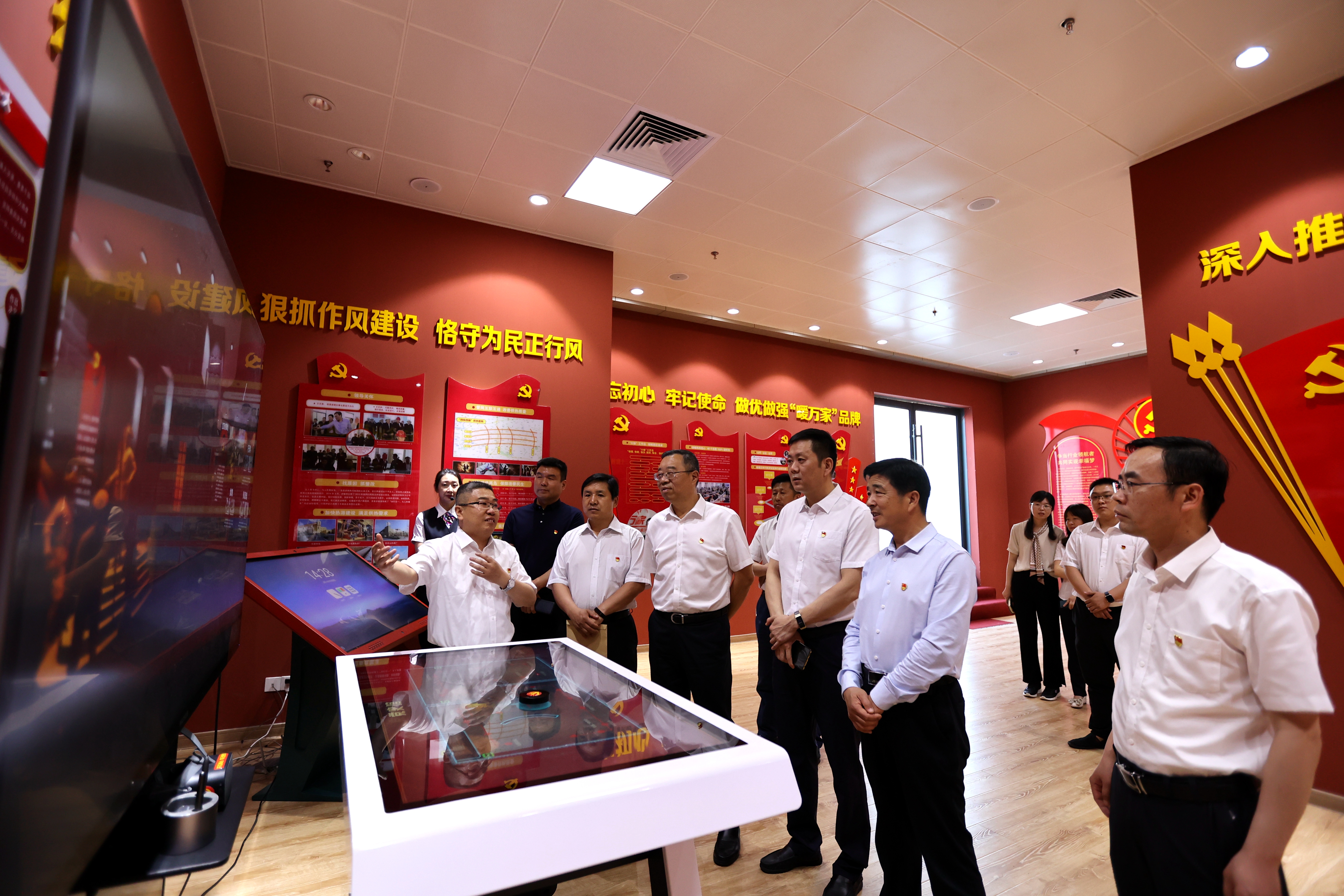 揭牌儀式結(jié)束后,與會(huì)領(lǐng)導(dǎo)共同參觀了濟(jì)南能源集團(tuán)黨建教育基地及ERP大數(shù)據(jù)機(jī)房,現(xiàn)場(chǎng)體驗(yàn)智慧黨建VR。據(jù)了解,為深入開展黨史學(xué)習(xí)教育,濟(jì)南能源集團(tuán)在原有黨建文化中心基礎(chǔ)上增加了智慧黨建管理平臺(tái)、智慧3D數(shù)字展館、燈塔之窗式VR體驗(yàn)紅色教育基地等科技黨建模塊,用科技為黨建賦能,通過(guò)VR技術(shù)應(yīng)用使廣大黨員可通過(guò)智慧黨建設(shè)備,更直觀、生動(dòng)地開展黨史學(xué)習(xí)。