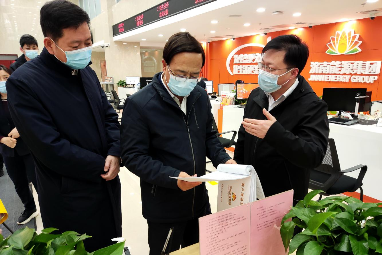 3月19日下午,濟南市國資委黨委書記、主任李旭東到濟南能源集團蓮花山客戶服務大廳,督導疫情防控和運營保障工作。濟南能源集團黨委書記、董事長潘世英陪同參加活動。
