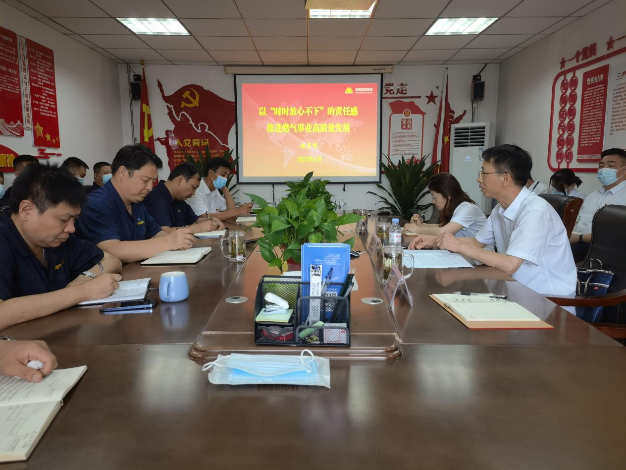 楊勇剛首先到濟(jì)華燃?xì)鈿w德門站查看運(yùn)行情況,強(qiáng)調(diào)要堅(jiān)決落實(shí)好安全生產(chǎn)責(zé)任,規(guī)范安全生產(chǎn)流程,確保安全高效運(yùn)行。在濟(jì)南濟(jì)華燃?xì)庥邢薰军h支部黨員活動(dòng)室,楊勇剛與黨支部班子成員和黨員交流支部黨建工作情況,并“以‘時(shí)時(shí)放心不下’的責(zé)任感推進(jìn)燃?xì)馐聵I(yè)高質(zhì)量發(fā)展”為題講授專題黨課。
