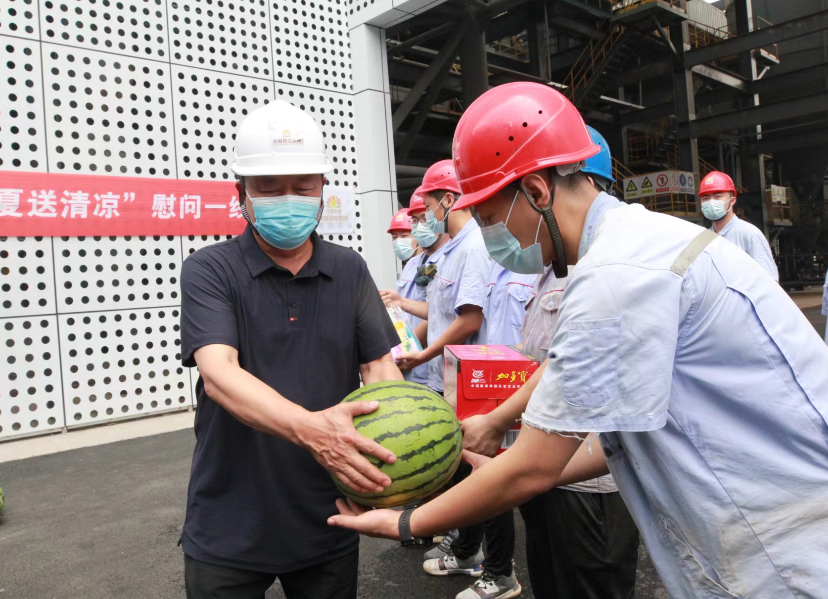 炎炎夏日送清涼,工會(huì)關(guān)懷心亦暖。為進(jìn)一步傳遞集團(tuán)黨委、工會(huì)對一線職工的關(guān)愛,切實(shí)維護(hù)廣大職工的職業(yè)安全與健康權(quán)益,6月30日,山東省能源工會(huì)主席李斌來到濟(jì)南能源集團(tuán)所屬濟(jì)南熱電集團(tuán)西部熱源分公司、濟(jì)南城市照明工程有限公司,深入一線,為在高溫下堅(jiān)守崗位的職工送去防暑降溫物品。山東省能源工會(huì)副主席趙和平,濟(jì)南能源集團(tuán)工會(huì)主席王維青參加慰問。