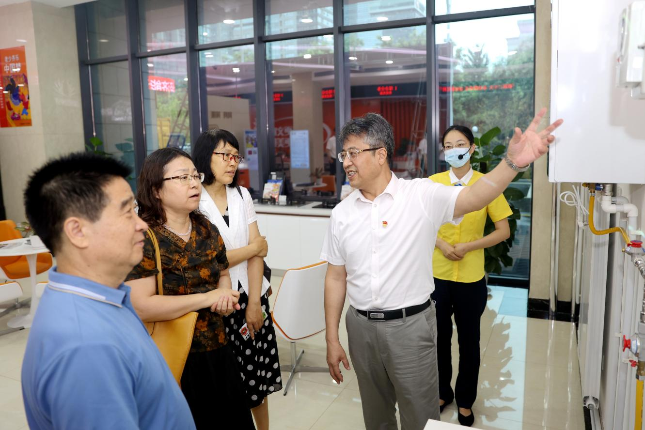 楊中清、董彥嶺一行參觀了濟(jì)南能源集團(tuán)熱力燃?xì)饪蛻舴?wù)中心、智慧廚房,親身感受綜合能源服務(wù)“一廳通辦”的現(xiàn)場辦理流程和“一鍵直達(dá)”的智能便捷服務(wù)過程,了解家庭燃?xì)獍踩WR和智能化燃?xì)庥镁?。通過觀看宣傳片和ERP平臺了解集團(tuán)基本情況,并進(jìn)行座談交流。
