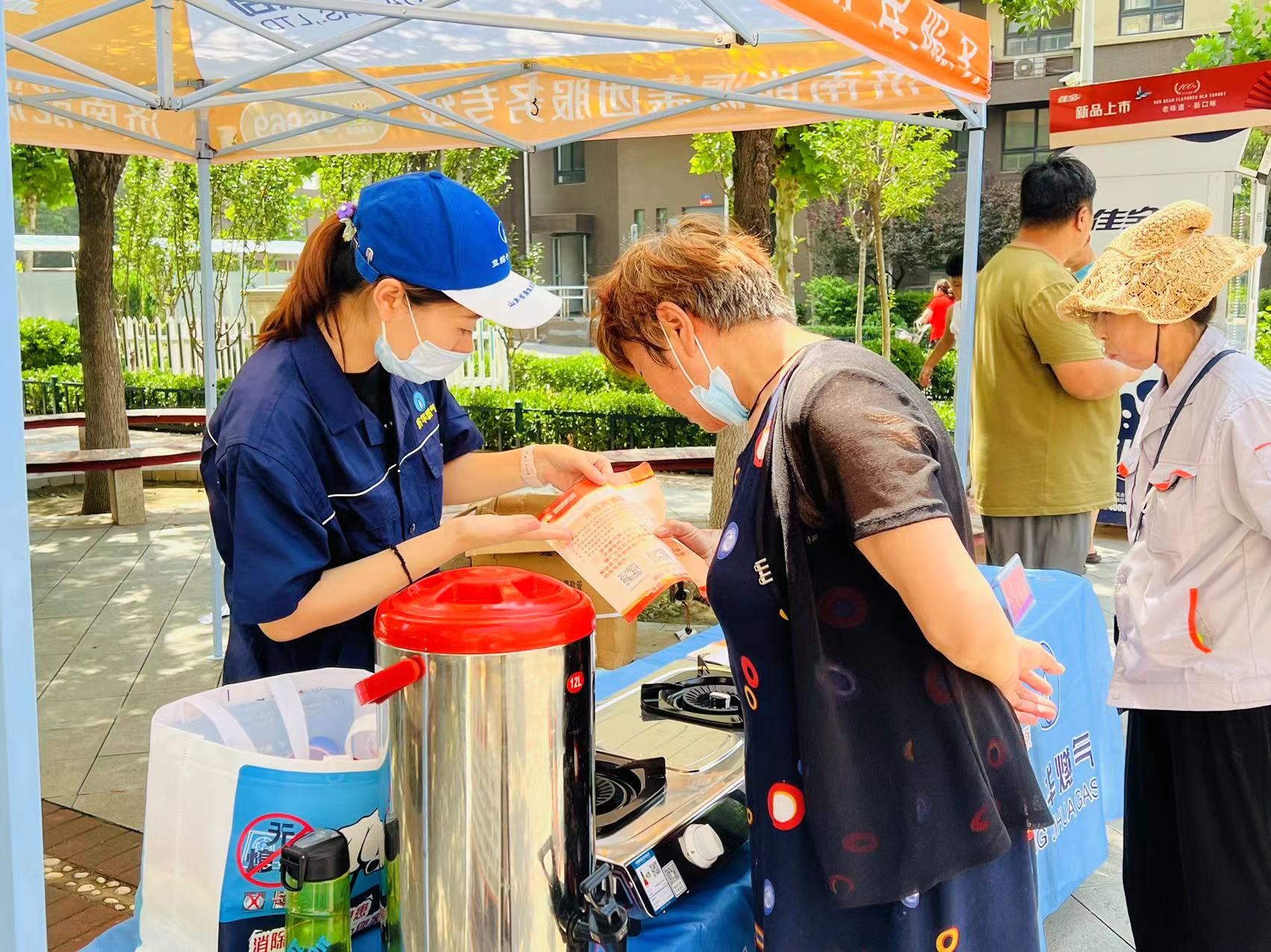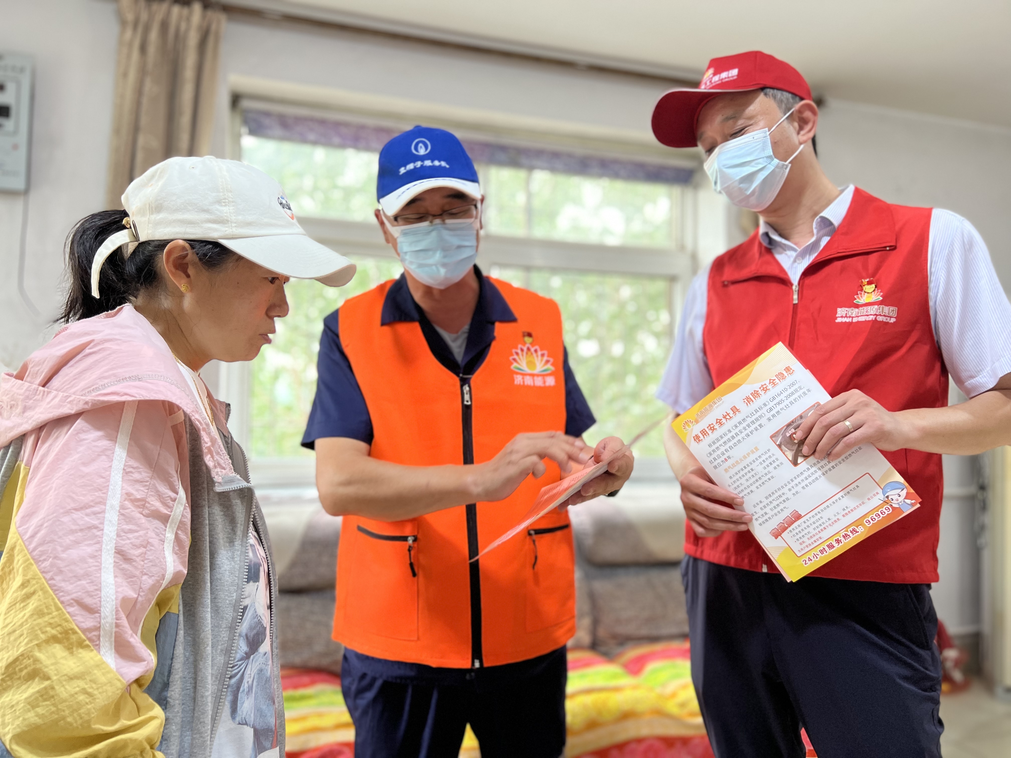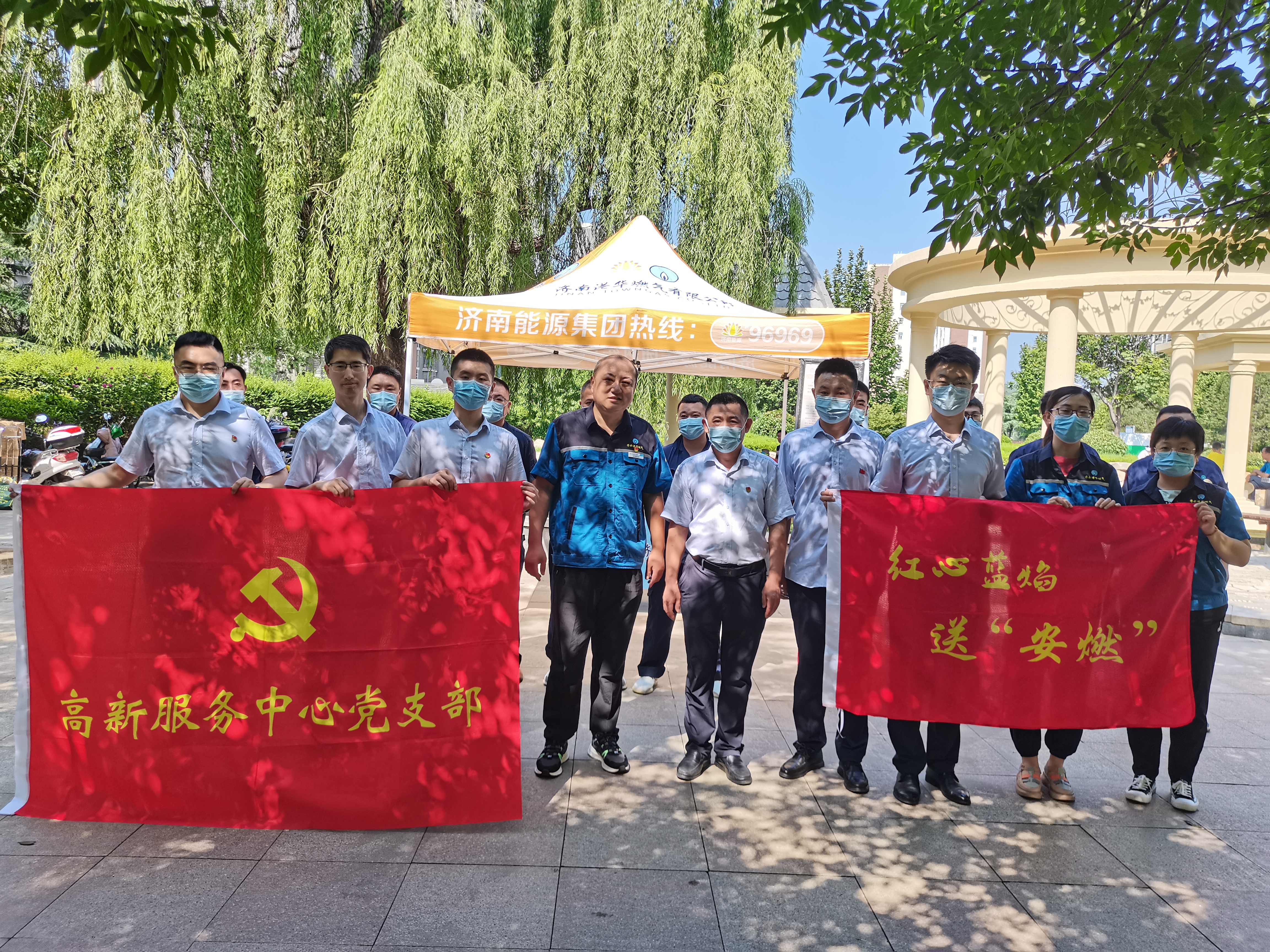 7月16日,在濟(jì)南市劉長(zhǎng)山路26號(hào)小區(qū),濟(jì)南能源工程第六分公司黨員志愿者劉一帆和她的黨員小伙伴們,佩戴黨員徽章,與氣熱管家一同進(jìn)社區(qū),為用戶提供送“安燃”服務(wù)。