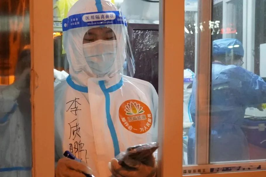 “韓勇、劉齊魯、楊明虎、趙曉斌,已到達(dá)社區(qū)進(jìn)行服務(wù)!”凌晨6:15分,第一聲響亮的鈴聲叫醒了沉睡的冬日。天漸亮?xí)r,他們已早早起床,簡(jiǎn)單的洗漱與早餐,進(jìn)行核酸抗原檢測(cè)并顯示陰性后,將N95口罩、防護(hù)服、防護(hù)面罩、手套、長(zhǎng)筒腳套等穿戴完畢,前往社區(qū)。