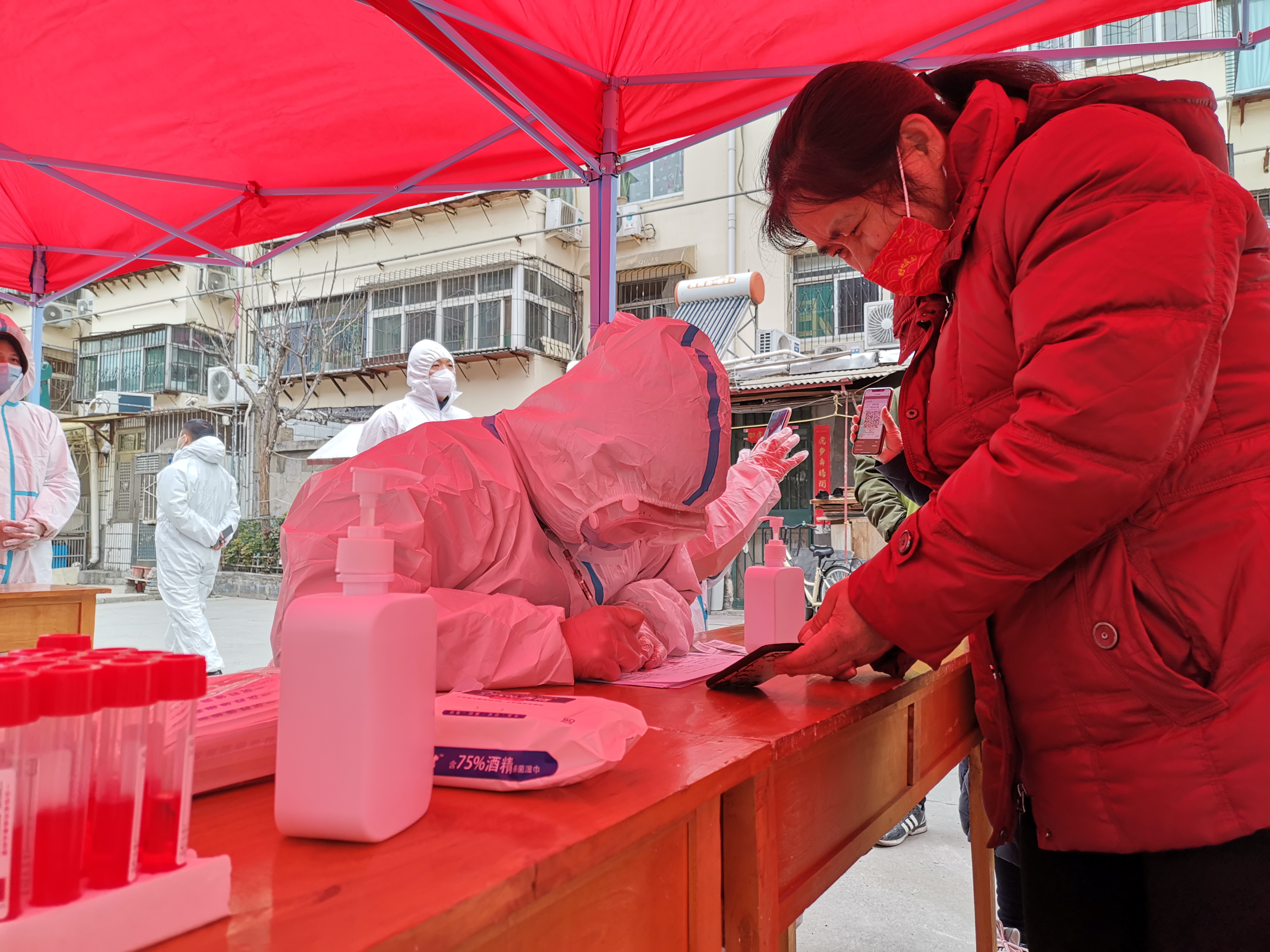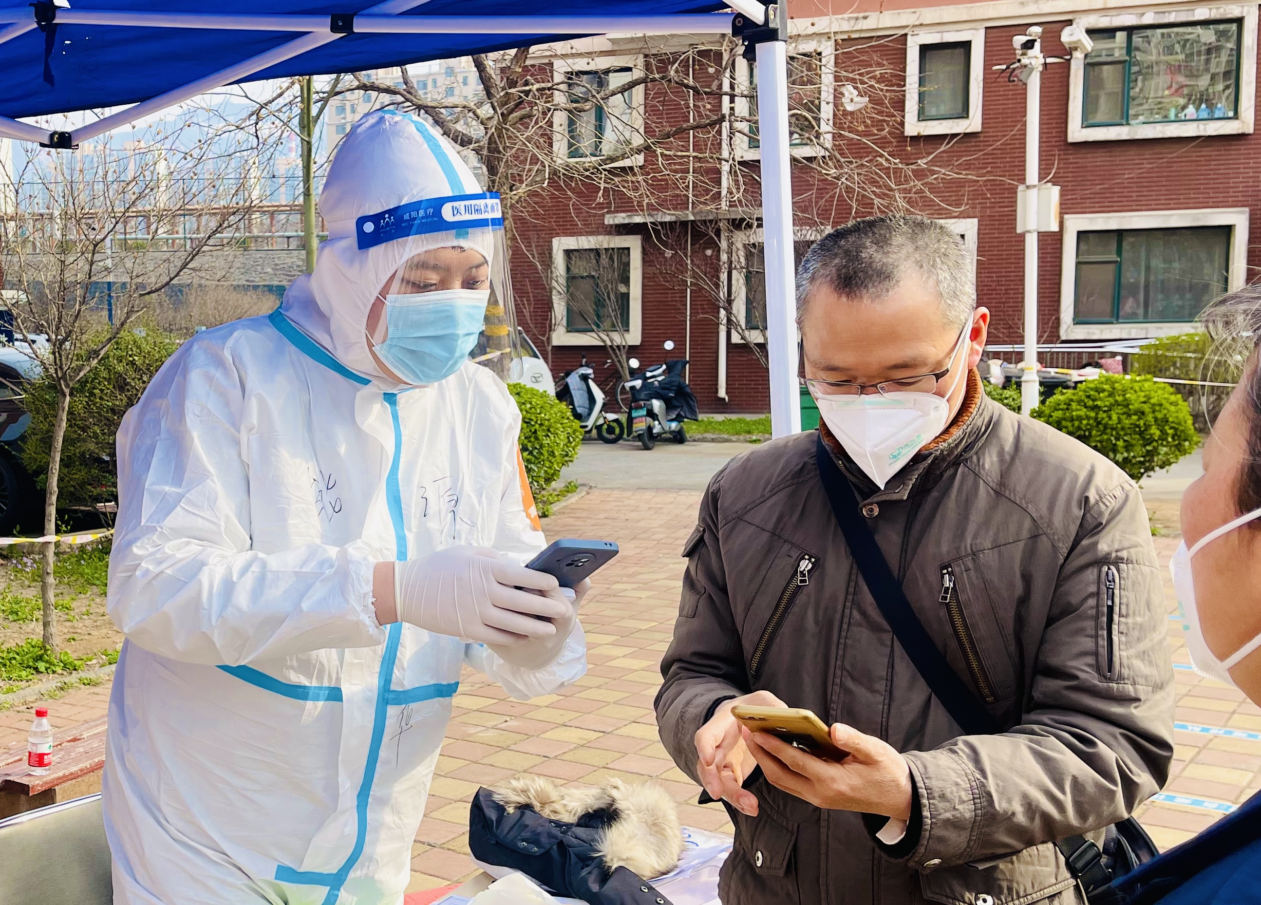 早上5點(diǎn),天剛蒙蒙亮,演練場內(nèi)等候區(qū)、登記區(qū)、采樣區(qū)、保障區(qū)、警戒區(qū)內(nèi)一切都已準(zhǔn)備就緒。王涵和他身邊的“大白”們就在這兒展開了一天的工作。主動(dòng)攙扶、引導(dǎo)掃碼、入戶采樣、安撫孩童······哪里有需要,哪里就是“大白”們的“戰(zhàn)場”。