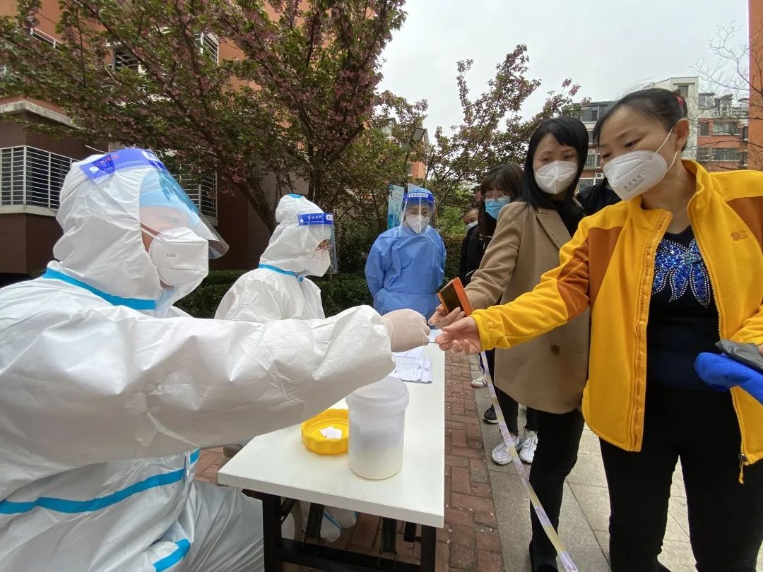 志愿者分工明確、配合密切,現(xiàn)場引導(dǎo)大家嚴(yán)格按照“佩戴口罩、間隔一米、測量體溫”等流程進(jìn)行核酸檢測。
