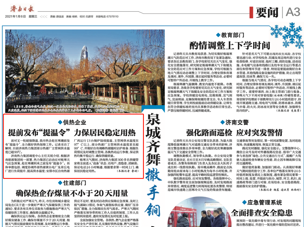【濟南日報A3】提前發(fā)布“提溫令” 力保居民穩(wěn)定用熱