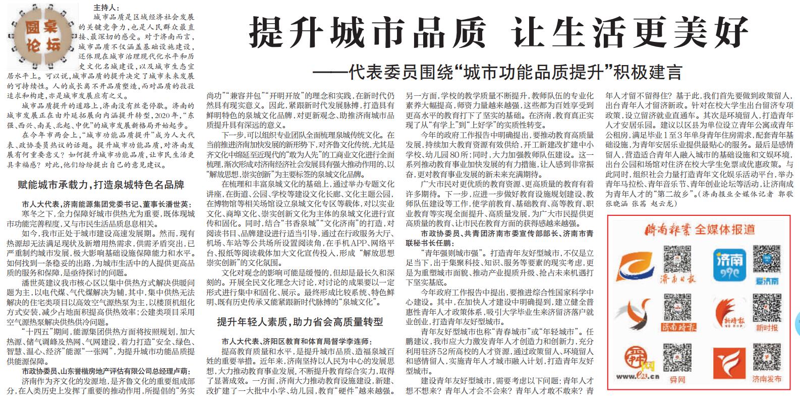 【濟南報業(yè)】提升城市品質(zhì) 讓生活更美好——代表委員圍繞“城市功能品質(zhì)提升”積極建言