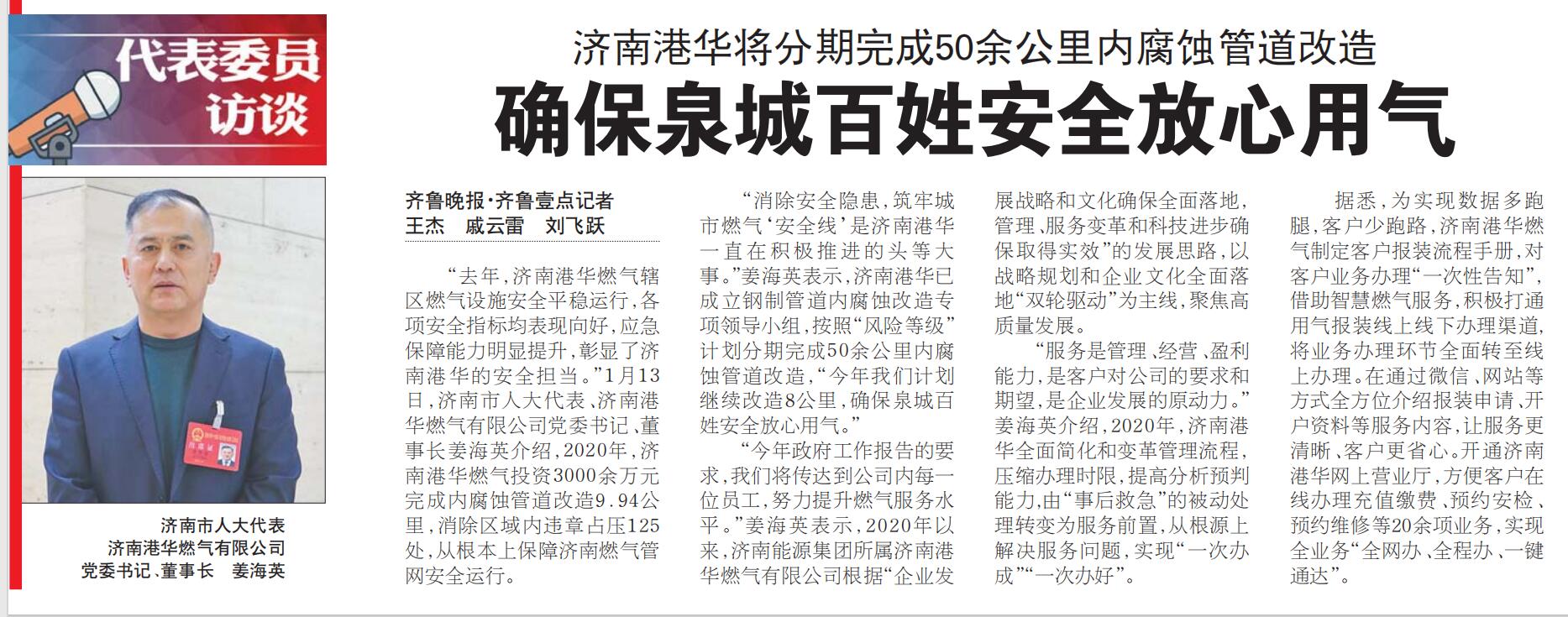 【齊魯晚報·齊魯壹點】濟(jì)南港華將分期完成50余公里內(nèi)腐蝕管道改造 確保泉城百姓安全放心用氣