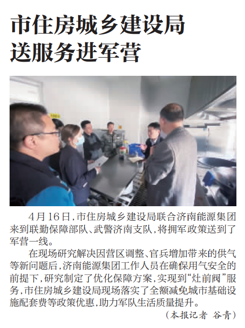 【濟(jì)南日?qǐng)?bào)】市住房城鄉(xiāng)建設(shè)局送服務(wù)進(jìn)軍營(yíng)