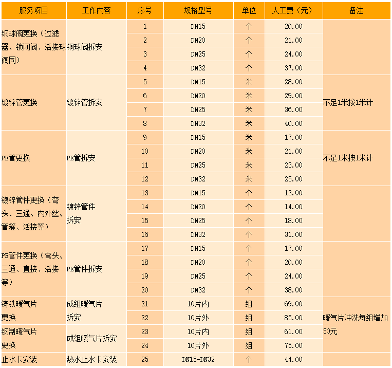 有償收費(fèi)依據(jù):濟(jì)價(jià)格字【2015】78號(hào)關(guān)于居民供熱室內(nèi)設(shè)施維修收費(fèi)標(biāo)準(zhǔn)的通知。