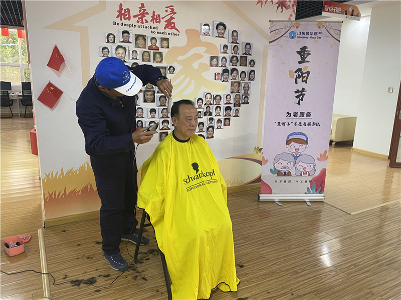 義務(wù)理發(fā):今天是山東濟(jì)華燃?xì)夤芫W(wǎng)運行部巡線員張巖康成花園巡線安檢的日子,他發(fā)現(xiàn)康成花園的老人比較多,在重陽節(jié)來臨之際,張巖特意帶來了自己的獨門手藝和節(jié)日祝福,為社區(qū)的老人義務(wù)理發(fā)。