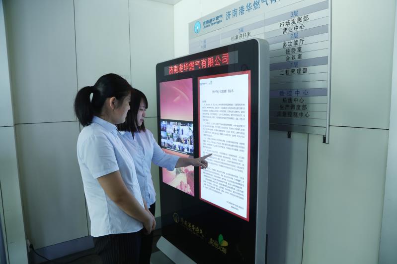 在濟南港華燃氣,人們一進門就能看到電子屏幕上發(fā)布的“厲行節(jié)約 杜絕浪費”倡議書,號召全體職工爭做良好美德風尚的參與者、踐行者、倡導者。